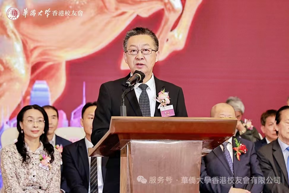 華僑大學香港校友會第十八屆會長高峰正式接任會長並發表致辭。他坦言責任重大,感激每一位校友的傾情奉獻,高度肯定了創會會長楊家庭及歷任會長的卓越引領。特別致謝疫情期間連任兩屆的黃若青會長、帶領義工團深耕香港社會服務的范慧琍校友,亦向歷任秘書長、理監事等致敬。高峰提及與校友會的半生情緣,自己曾兩度擔任會長,還曾出任監事長、顧問委員會主席等要職,曾組織200餘位校友返校參加母校50周年校慶,籌得65萬元捐款;其後由黃若青會長續接此事,帶領校友追捐約40萬元,兩屆會務合力募款百餘萬元,共同為母校留下了香港校友樓“紫荊樓”這一珍貴印記。高峰指出,未來任期,以“奉獻、關懷、傳承、創新”為宗旨,重點凝聚年輕校友力量,為校友會注入新鮮活力,搭建更廣闊交流平台,守護校友會大家庭團結,為香港繁榮穩定、母校發展壯大貢獻力量。