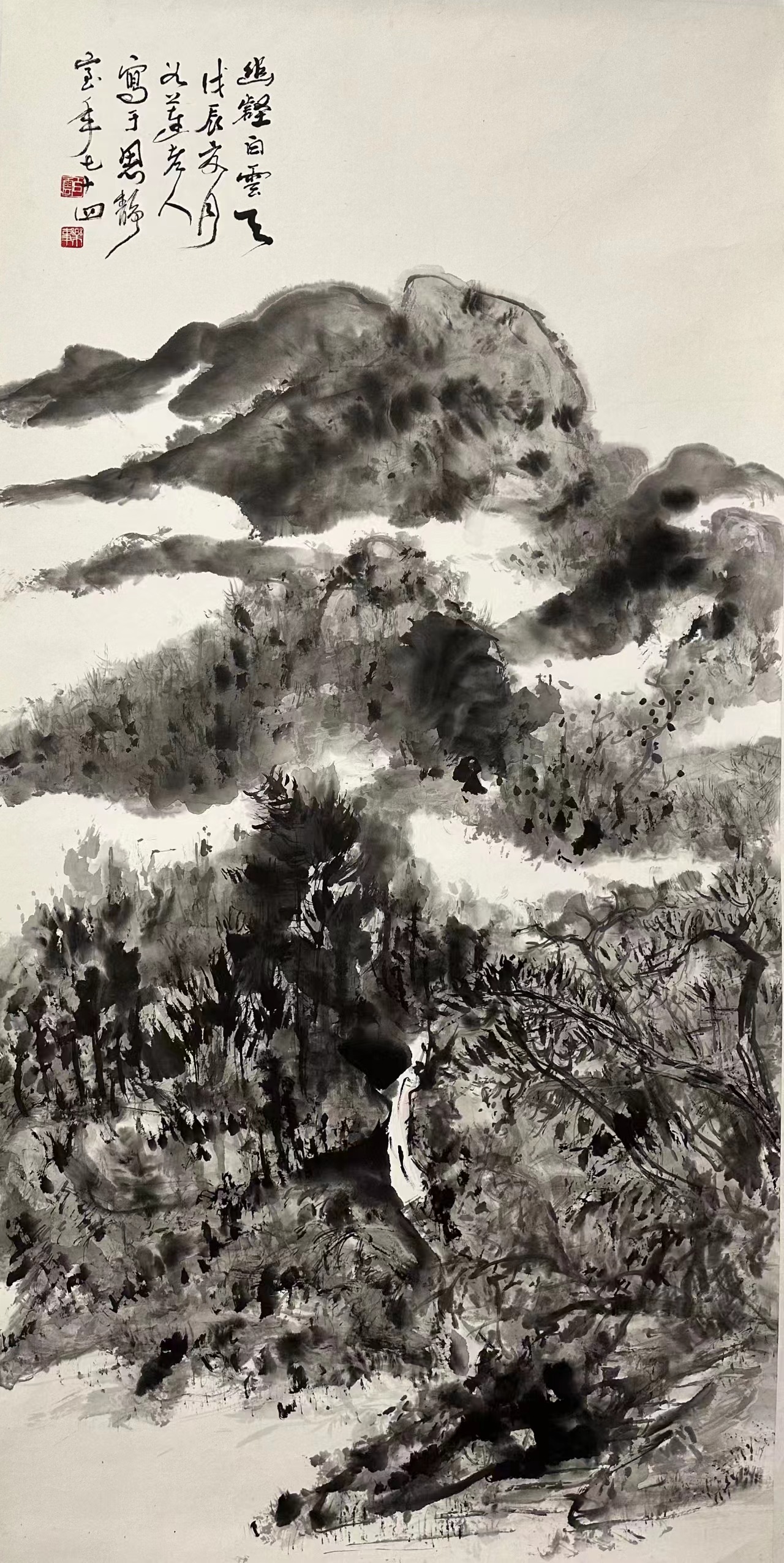 他对水的运用尤为超绝,通过调控水量、墨量与纸张性能,营造出云烟氤氲、雨雾迷蒙、山川浑茫的贵州意象。其画面墨色层次丰富至极,从极焦至极润,于“苍润”中见“华滋”,将水法、墨法巧妙融入笔端,把水墨的材料表现力推向新高度。