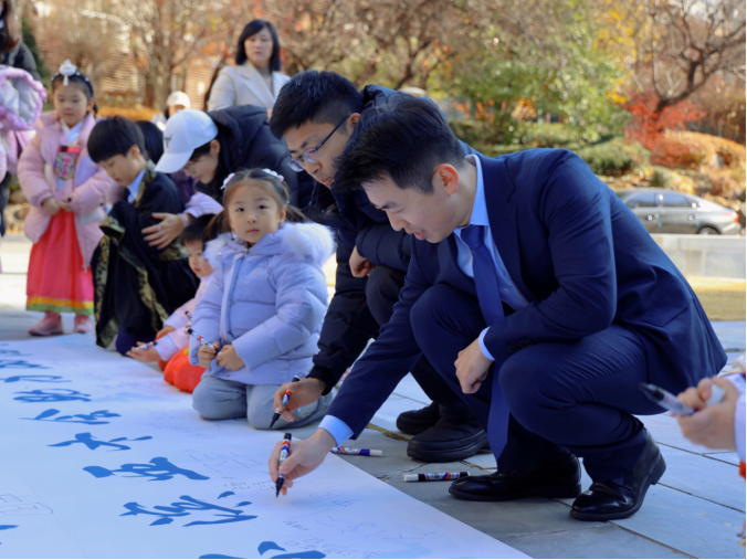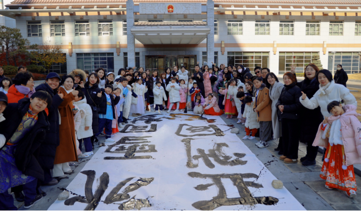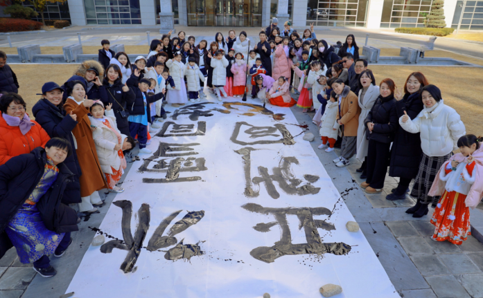 在韩华侨心系亚冬,巨幅翰墨豪情助力