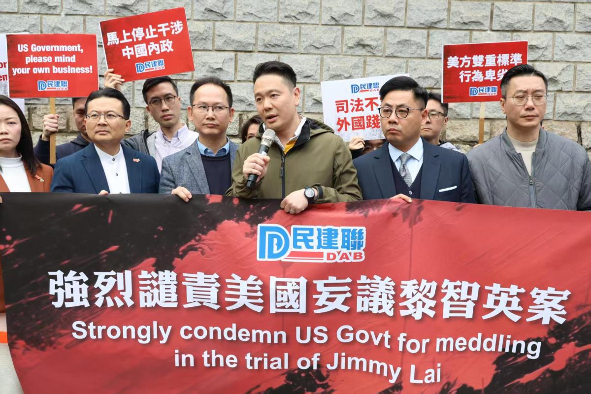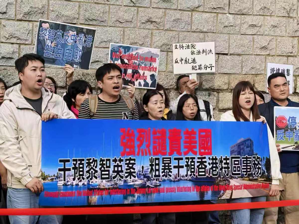 10日),香港民建聯、工聯會等政黨團體及香港市民紛紛前往美國駐港澳總領事館、英國駐香港總領事館、歐盟駐港總領館、澳大利亞駐港總領館等領館抗議,強烈譴責西方國家、反華媒體、組織及政客等,藉黎智英案對香港特區作出汙衊抹黑和攻擊。