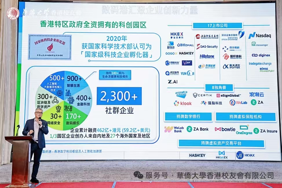 活動伊始,專題講座「香港數碼港如何助力初創企業騰飛及賦能行業數字化轉型」率先拉開帷幕。香港數碼港行政總裁、華僑大學電子及電腦83級雙學士校友鄭松岩博士受邀擔任演講嘉賓,從科技創新生態構建、初創企業孵化資源、行業數字化轉型路徑等多個維度進行深度分享,為在場校友帶來前沿創新思維與實踐經驗。