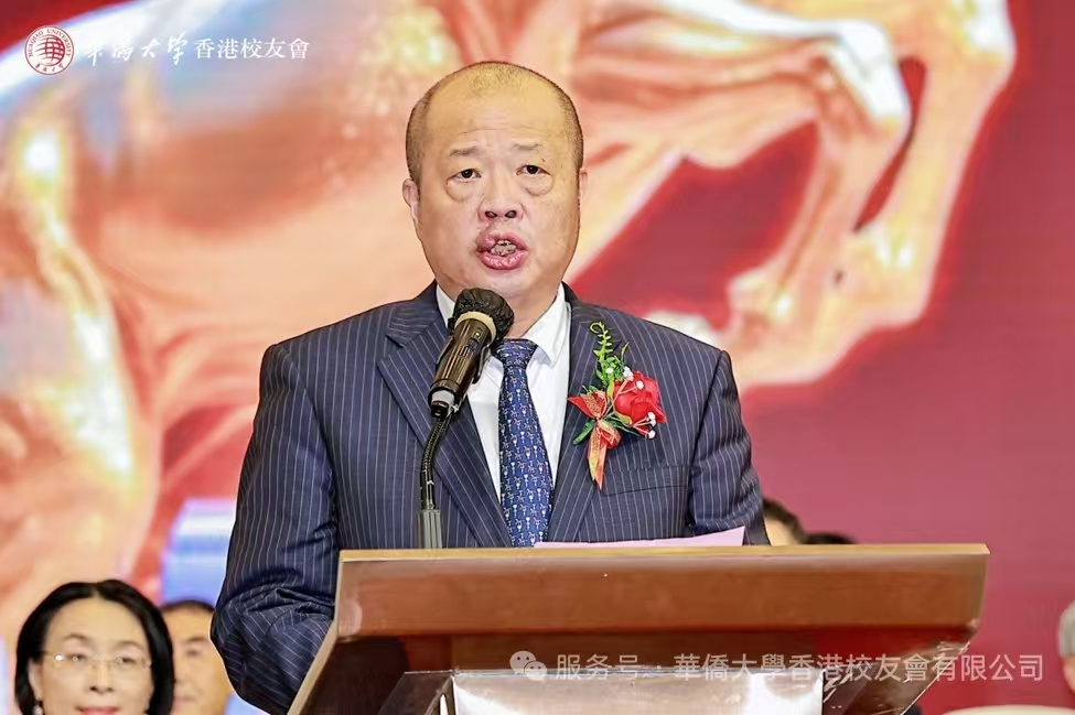 華僑大學香港校友會第十八屆會長高峰正式接任會長並發表致辭。他坦言責任重大,感激每一位校友的傾情奉獻,高度肯定了創會會長楊家庭及歷任會長的卓越引領。特別致謝疫情期間連任兩屆的黃若青會長、帶領義工團深耕香港社會服務的范慧琍校友,亦向歷任秘書長、理監事等致敬。高峰提及與校友會的半生情緣,自己曾兩度擔任會長,還曾出任監事長、顧問委員會主席等要職,曾組織200餘位校友返校參加母校50周年校慶,籌得65萬元捐款;其後由黃若青會長續接此事,帶領校友追捐約40萬元,兩屆會務合力募款百餘萬元,共同為母校留下了香港校友樓“紫荊樓”這一珍貴印記。高峰指出,未來任期,以“奉獻、關懷、傳承、創新”為宗旨,重點凝聚年輕校友力量,為校友會注入新鮮活力,搭建更廣闊交流平台,守護校友會大家庭團結,為香港繁榮穩定、母校發展壯大貢獻力量。
