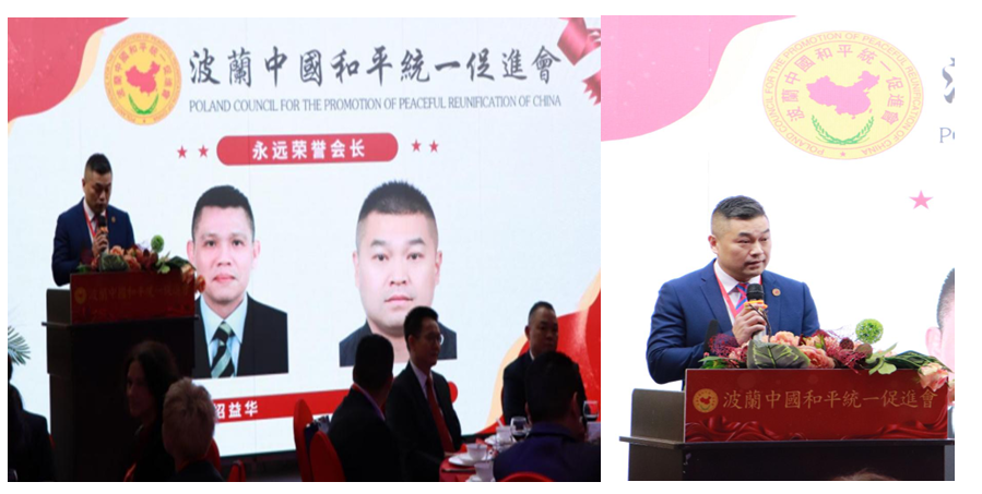 新任第四届会长团会长张光艺在致辞中表示,将不负信任、不辱使命,带领新一届会长团承继并发扬历届班子的优良传统,积极推动祖国统一大业,促进中华民族伟大复兴。他强调,“祖国必然统一,也必须统一”,坚决反对任何形式的台独分裂活动,坚守一个中国原则,加强中波民间交流,讲好中国故事、传递统一声音。张会长展望到“第四届会长团不忘初心、勇担使命,在反独促统路上走得更稳、更实、更远,为实现祖国完全统一和中华民族伟大复兴贡献新的更大力量。