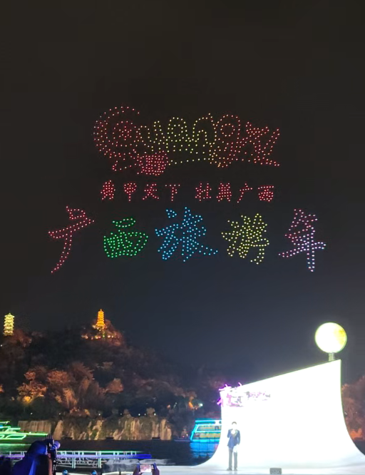 12月5日晚,“字躍星空,點亮夜廣西”無人機夜空表演活動暨“夜廣西”遊記大賽頒獎儀式在