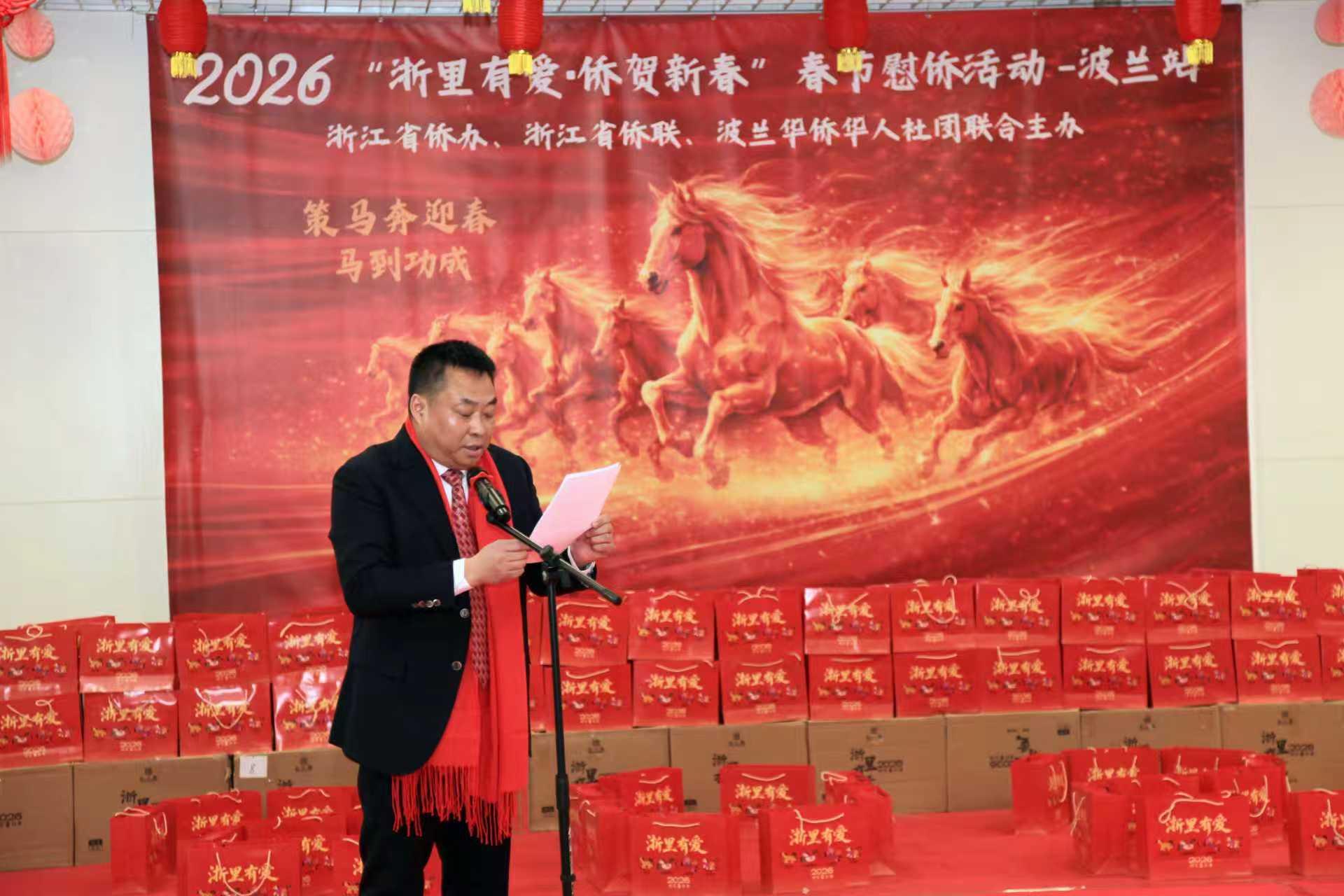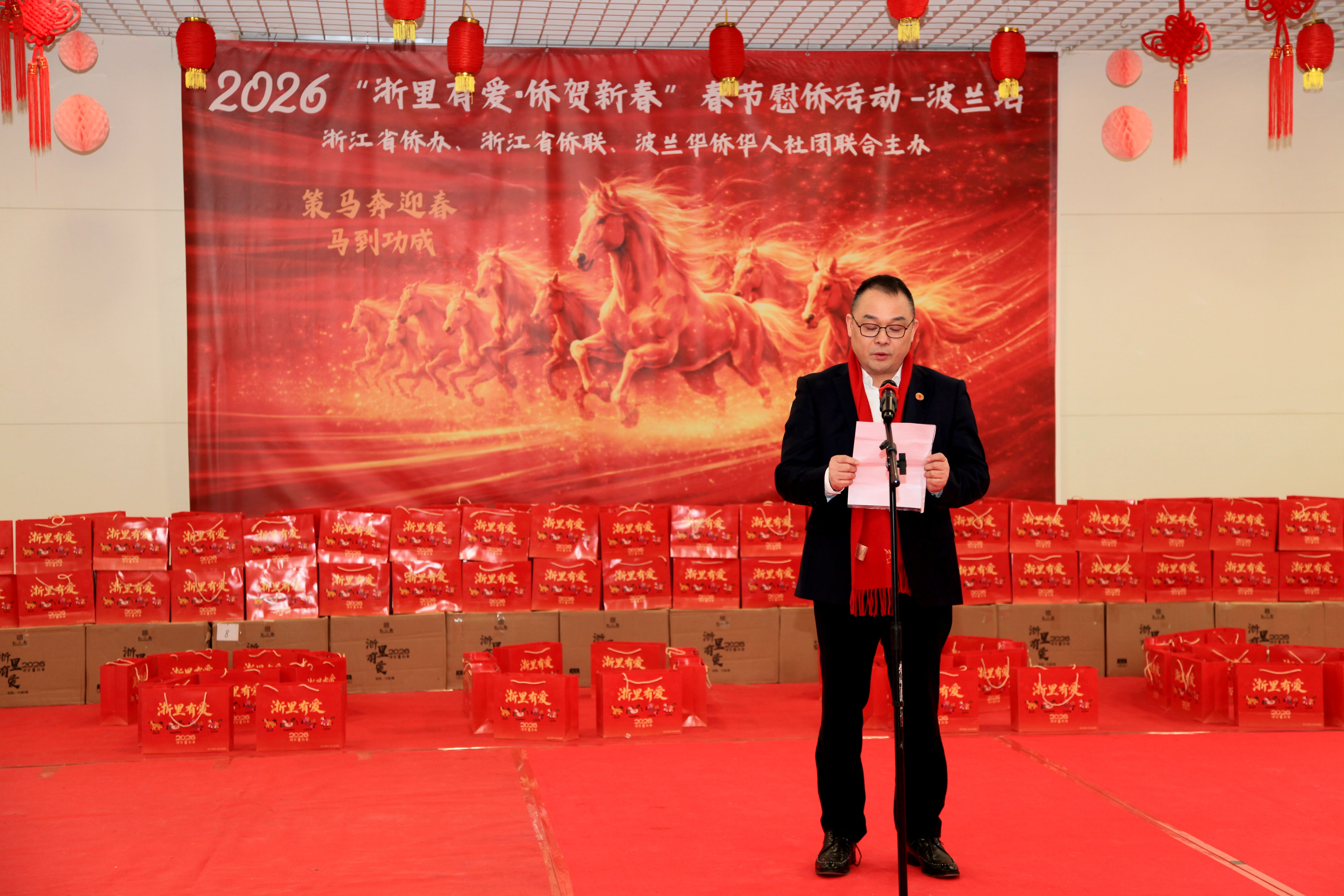波兰浙江商会会长傅利敏宣读《致浙江籍海外侨胞的春节家书》。