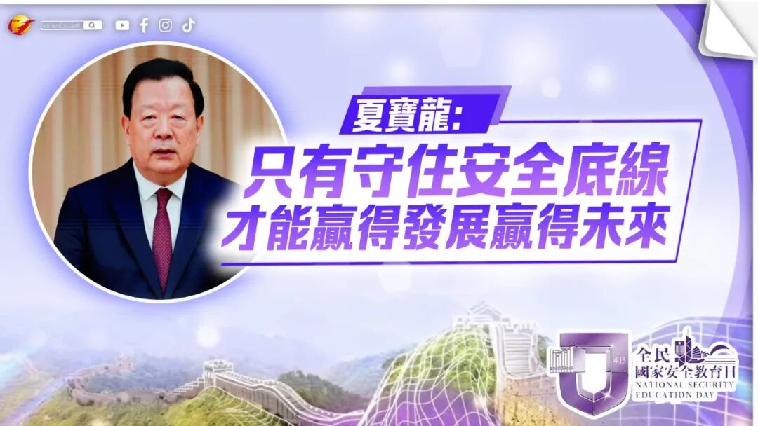 夏寶龍指出,正是在這樣的危急形勢下,香港國安法等一系列維護國家安全的法律制度相繼出台,香港特別行政區維護國家安全委員會、駐港國家安全公署等專門機構先後設立,構建起了香港新安全格局的「四樑八柱」,香港維護國家安全工作取得歷史性成就、發生歷史性變革。