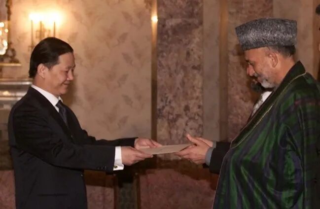 (2002年作者首次出任大使,向阿富汗總統卡爾紮伊遞交國書)