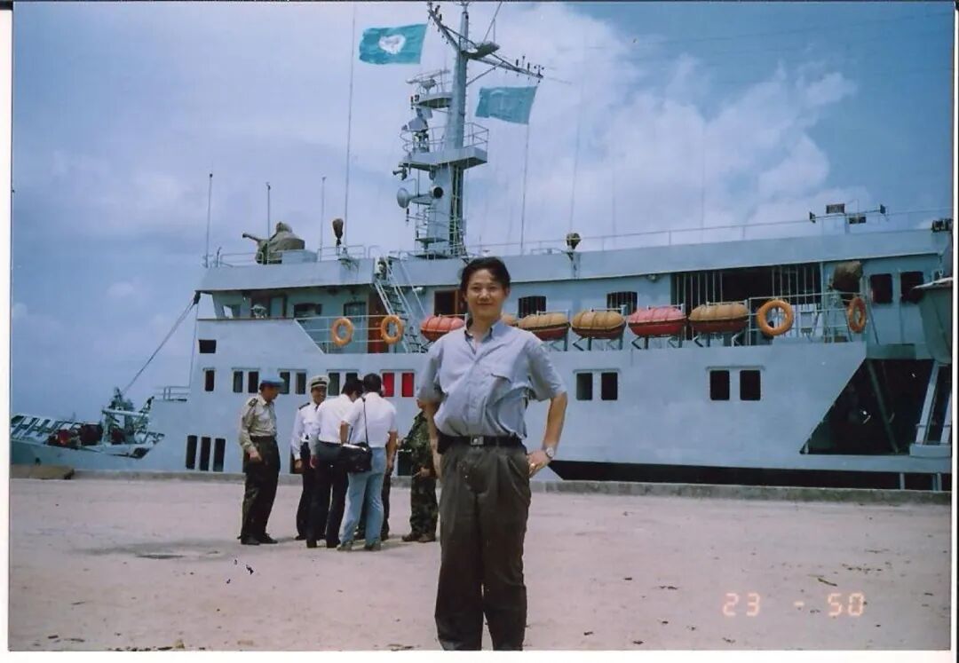 1992年在柬埔寨磅遜港迎接中國第一支維和部隊)