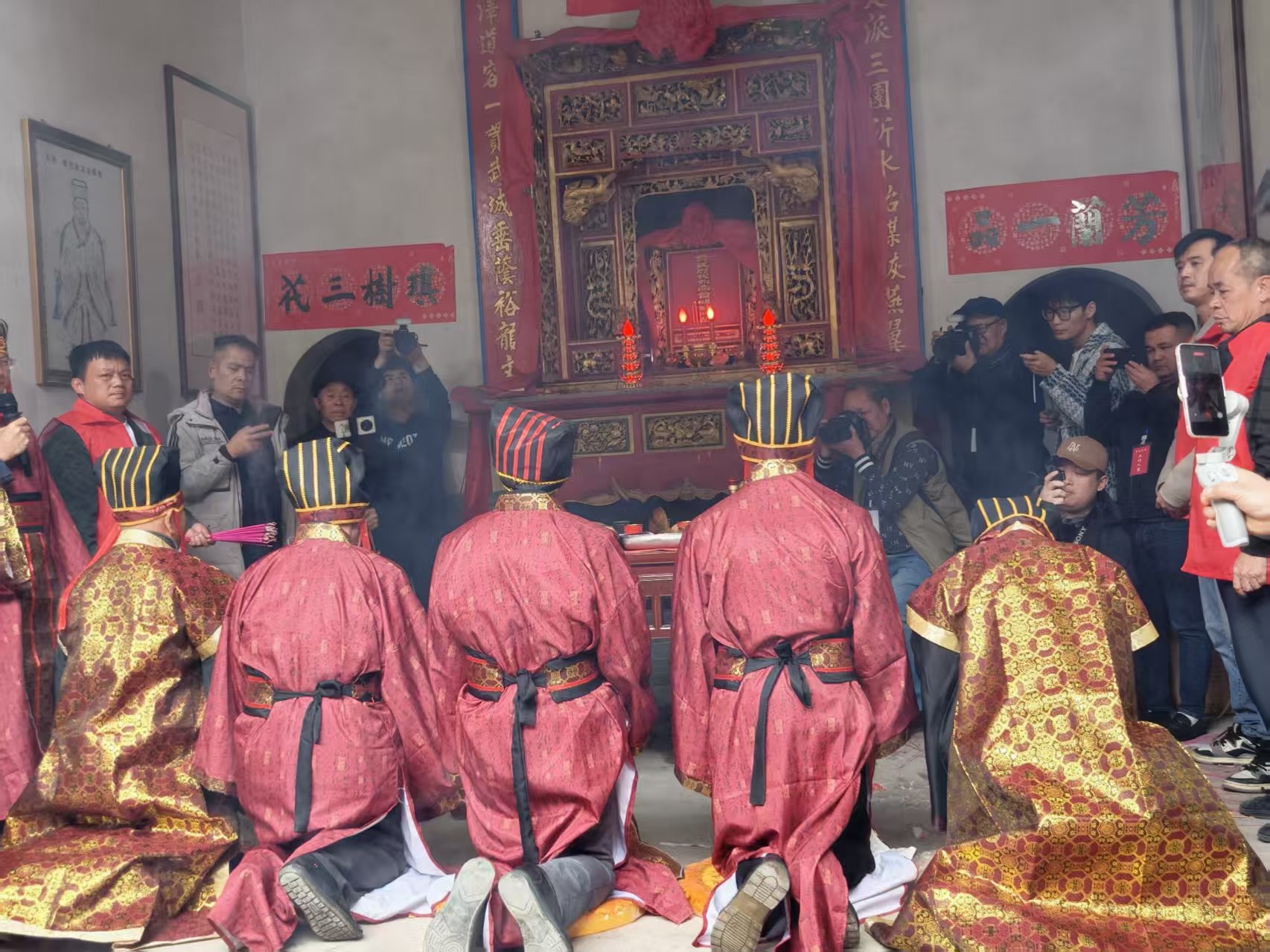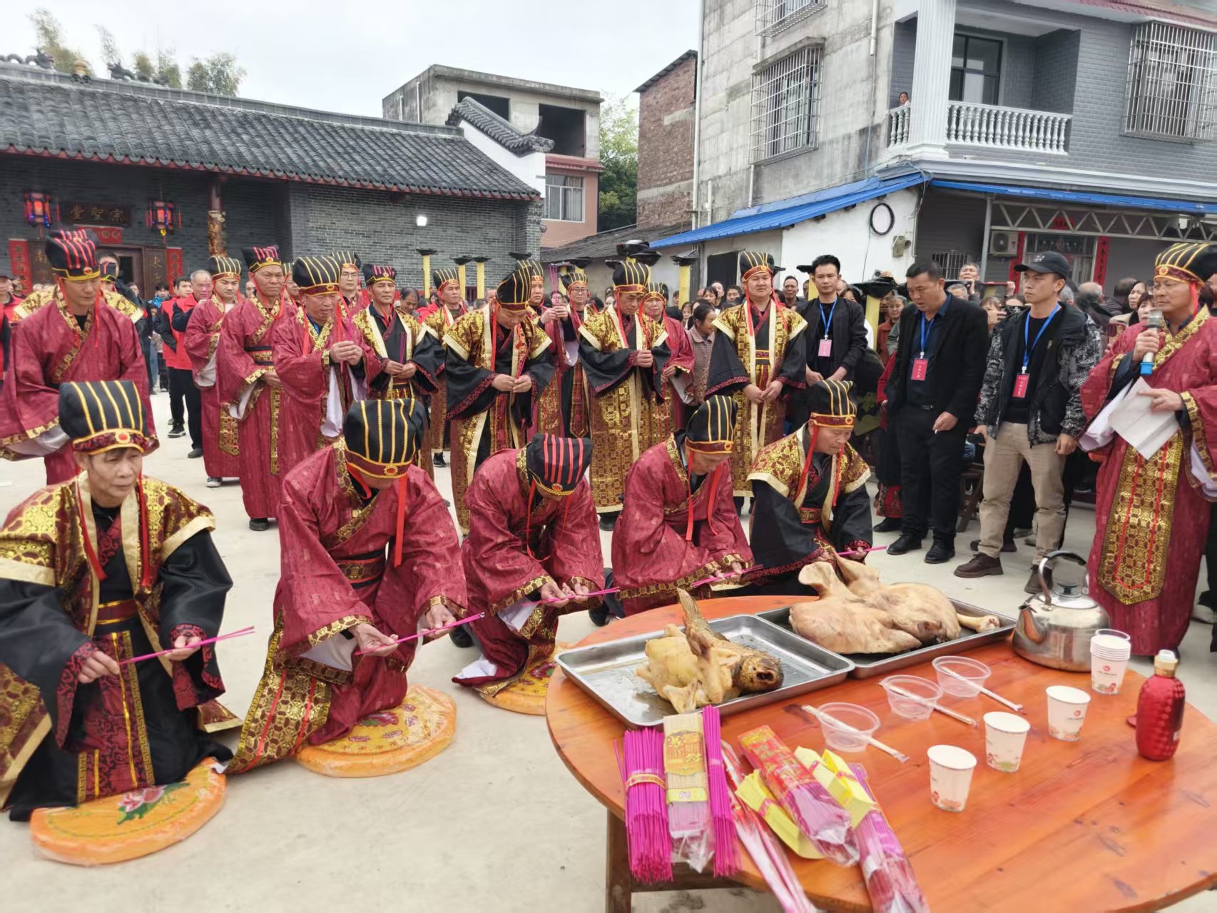 的儀式莊嚴而熱烈。在祭拜天地神靈後,各村宗親代表身著漢服,於祠內肅穆祭祖,感恩先德。
