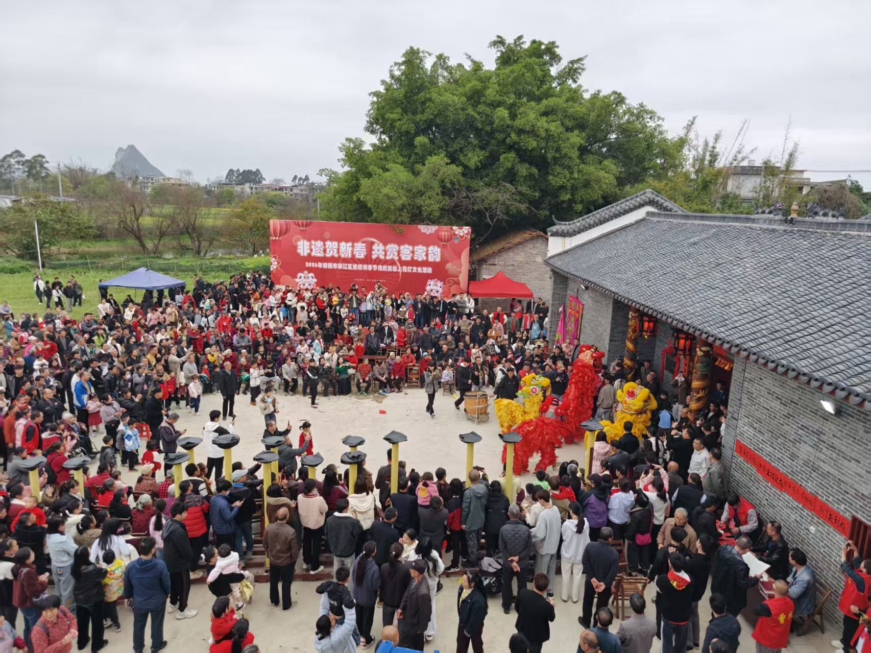柳州市進德鎮四連村土垢屯的曾家祠堂前,鑼鼓喧天,醒獅歡騰。一場以