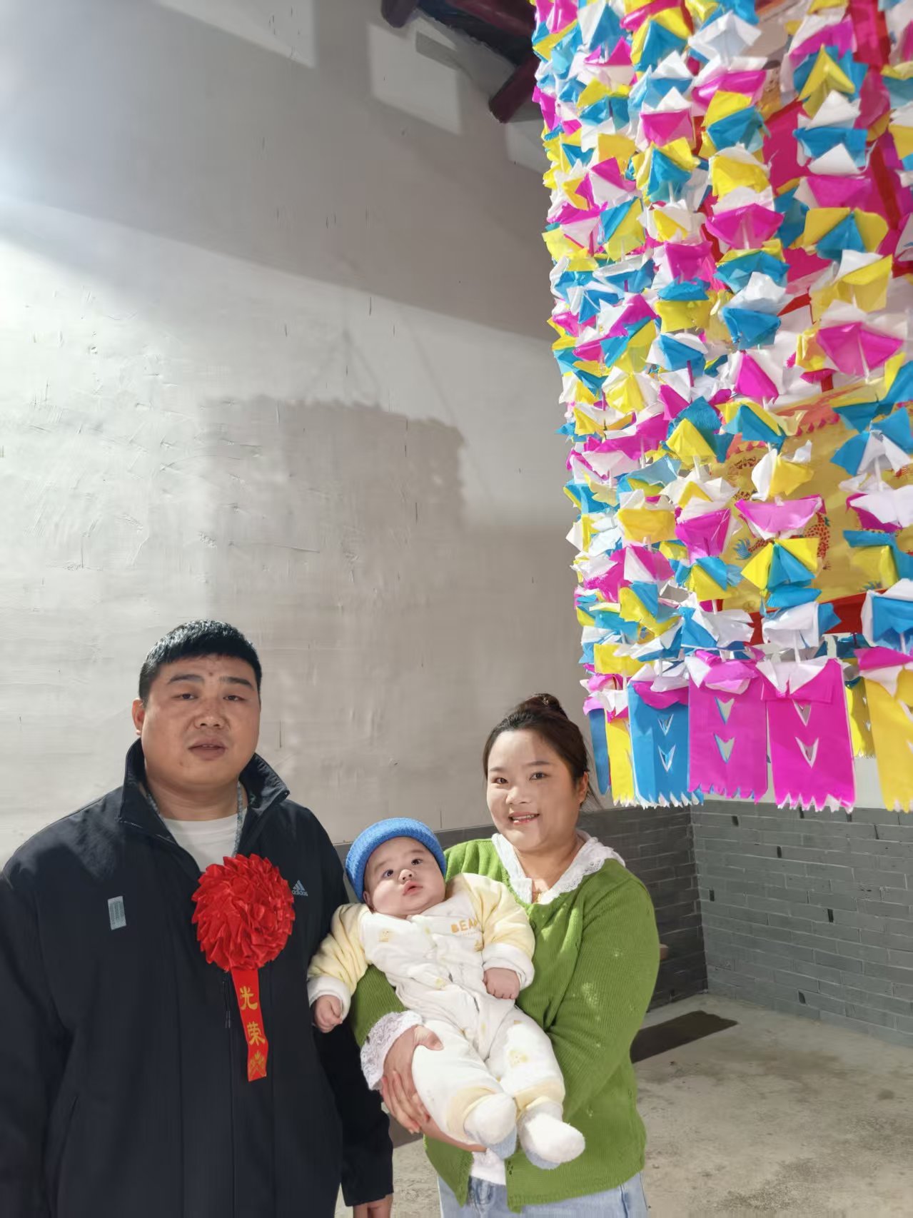 “三寶”在新燈下合影,記錄這充滿祝福的時刻