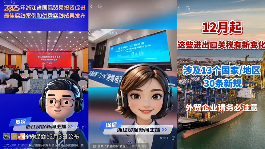 一是“浙江贸促”宣传矩阵提能升级。“浙江贸促”视频号首次推出视频拜年、AI动画主播、每月新规禁令等新载体,流量破千万。